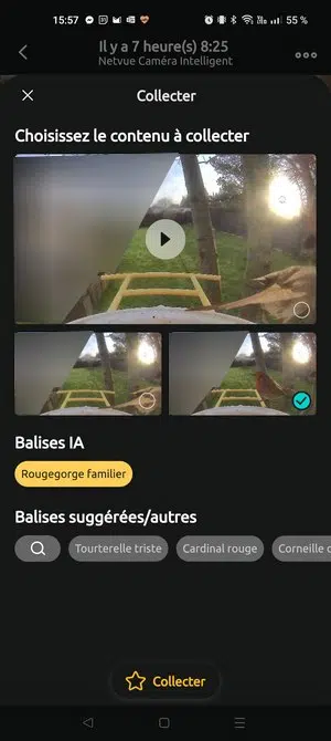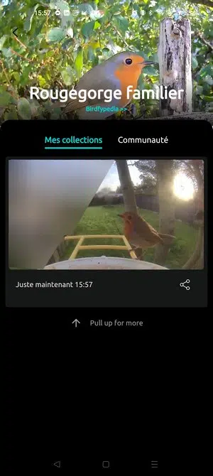 - Vous pouvez ajouter des images à votre collection, ce qui signifie que vous pouvez retrouver toutes vos images d'un même oiseau dans votre collection. Vous avez également accès à des captures d'autres membres de la communauté Birdfy (c'est-à-vous de partager manuellement une prise de vue).