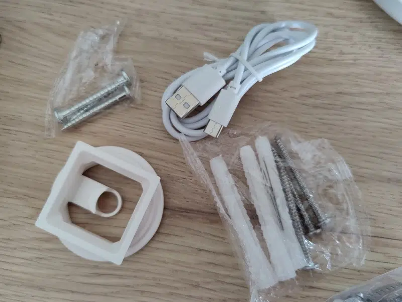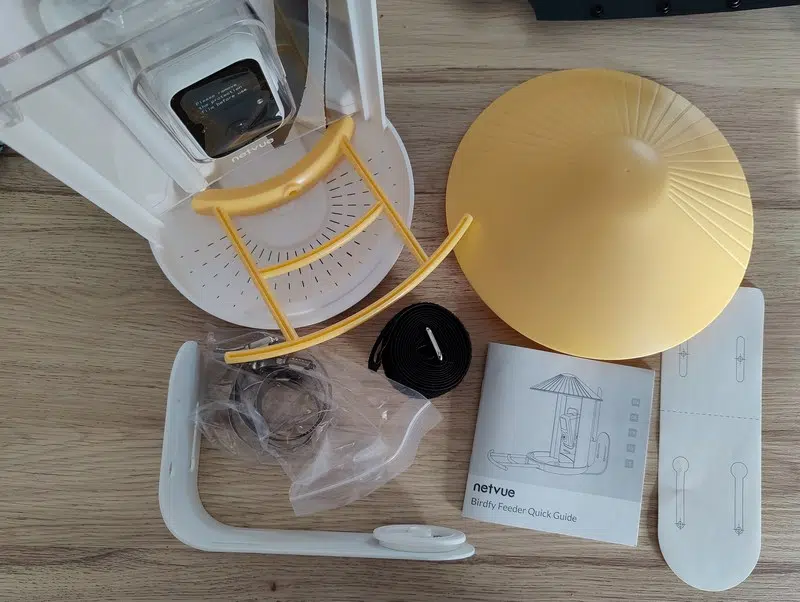 Le kit est très complet, la seule chose qui manque, c'est la carte microSD. Il y a de nombreux éléments pour le montage du Birdfy Feeder. Ceci vous permettra de vous en sortir, selon l'emplacement souhaité pour l'installation : dans un arbre, sur un mur, sur une clôture, etc...