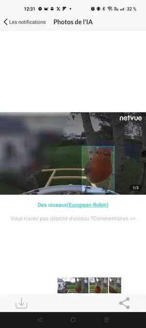 Cette caméra est originale et surprenante : la fonction de caméra est efficace, avec de bonnes capacités de détection, et la reconnaissance des espèces d'oiseaux par IA est également au point. Nous sentons que Netvue travaille sur cette technologie depuis plusieurs années et c'est un produit abouti que nous propose cette marque.