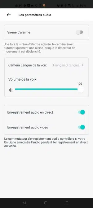 - Sirène anti-intrusion interne à la caméra