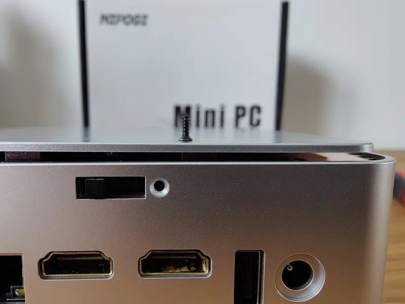 Lorsque le boitier est à plat, il est surélevé de 6 mm vis-à-vis de la surface sur laquelle le mini PC est posé. Ceci est important, car l'extraction de l'air chaud s'effectue par le dessous du boitier. L'air froid quant à lui rentre par le dessus du boitier et par les côtés.