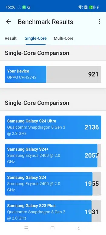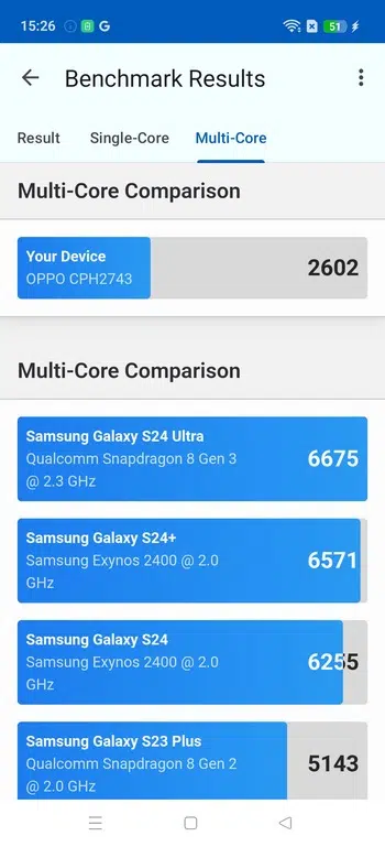 Animé par le Snapdragon 6 Gen 1, le Reno14 FS 5G délivre des performances solides pour un usage polyvalent : navigation fluide, multitâche sans ralentissement, et même un peu de jeu vidéo tant que l’on ne pousse pas les réglages au maximum. L’écran 120 Hz accentue la sensation de fluidité dans l’interface et les applications.