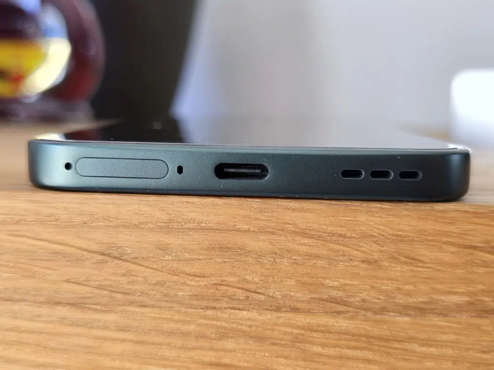Sur la tranche inférieure, on retrouve le port USB-C, accompagné d’un tiroir SIM et d’un micro discret, ainsi que le haut-parleur (stéréo sur ce modèle). La tranche droite accueille les boutons de volume, placés de façon stratégie pour tomber directement sous le pouce ou l’index selon la prise en main, et le bouton d’alimentation. À l'opposé, sur la tranche gauche, il y a tout simplement... rien. Enfin, la tranche supérieure se montre plus épurée, avec seulement un micro secondaire.
