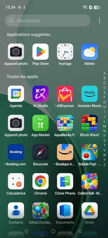 Le smartphone tourne sous ColorOS, la surcouche maison d’OPPO basée sur Android. Et, là, il y a déjà un vrai point négatif : la présence de nombreux bloatwares, c'est-à-dire toutes ces applications préinstallées dont on se passerait volontiers. La liste est vraiment longue : LinkedIn, Amazon, Netflix, TikTok, Facebook, Bridge Race, Temu, Booking, Aliexpress, et d'autres jeux. C'est trop, en fait. Il est possible de désinstaller ces applications, mais c'est réellement pénible.