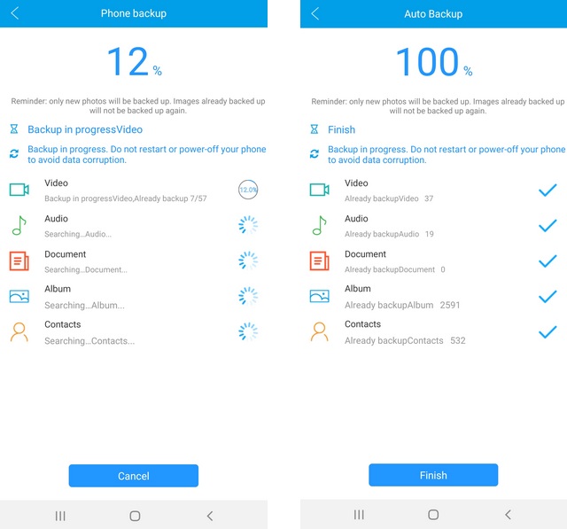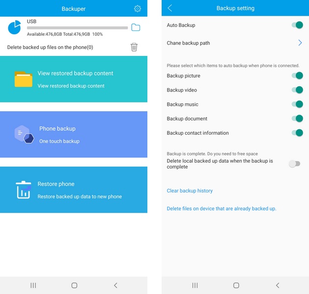 Au-delà du fait qu'elle ne soit pas en français, cette application est simple à utiliser et propose trois grandes fonctions : voir les données sauvegardées, sauvegarder l'appareil et restaurer des données. Lorsque le mode "Auto backup" est actif, l'application s'ouvre automatiquement à la connexion du disque et la sauvegarde se déclenche au bout de 10 secondes.