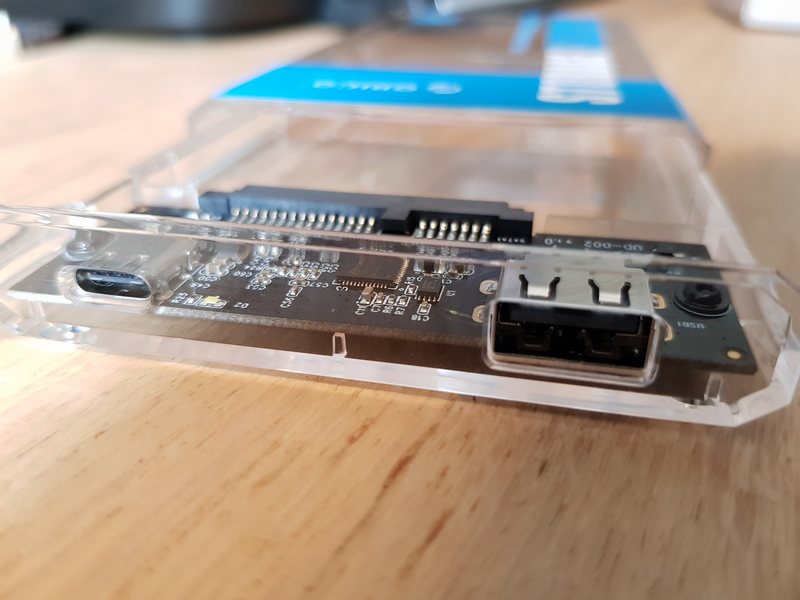 Ce qui le différencie d'un boîtier externe classique, c'est la présence des deux ports USB : l'un en USB-A et l'autre en USB-C. Vous comprendrez mieux pourquoi il est important d'avoir deux ports USB en poursuivant la lecture de cet article.
