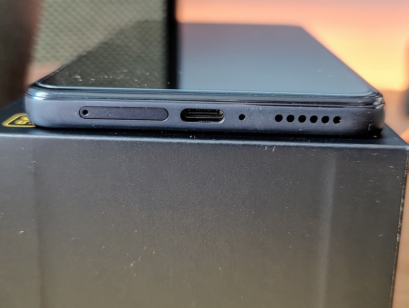 Si l'on s'intéresse à la tranche droite de l'appareil, on y trouve le bouton on/off qui intègre le lecteur d'empreintes, ainsi que le bouton pour gérer le volume. Par contre, sur la tranche gauche, il n'y a rien du tout. Sur le dessus se trouve la prise Jack, un haut-parleur assez large, un micro et un capteur infrarouge. Enfin, sur le dessous, se trouve le slot pour les cartes SIM/microSD, un deuxième haut-parleur, ainsi qu'un second micro, et le port USB-C. L'appareil est très complet d'un point de vue de la connectique.