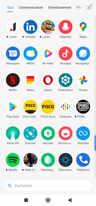 Ce qui me déplaît personnellement, et à chaque fois que j'allume un smartphone pour la première fois j'y prête une attention particulière, c'est le nombre d'applications tierces préinstallées ! Si l'on prend celles de Google et Xiaomi, on est déjà à près de 40 applications, auxquelles s'ajoutent des applications supplémentaires : AliExpress, Amazon Music, Booking, LinkedIn, Netflix, Opera, Tik Tok, Spotify, etc... À cela, ajoutez aussi des jeux : PUBG, Lords Mobile, State of survival, Dust Settle, Bubble Shooter, etc... Il y a près de 20 applications/jeux préinstallées en plus de la panoplie de base. Franchement, c'est trop.