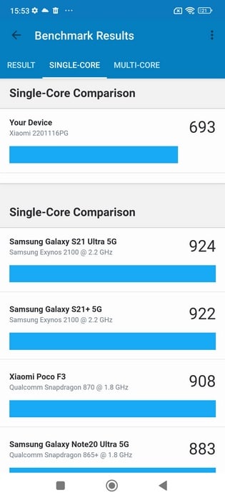 Finissons cette partie avec quelques benchmarks réalisés avec Geekbench et 3D Mark. La bonne nouvelle, c'est que lors des stress tests effectués via Geekbench, le smartphone n'a pas chauffé.