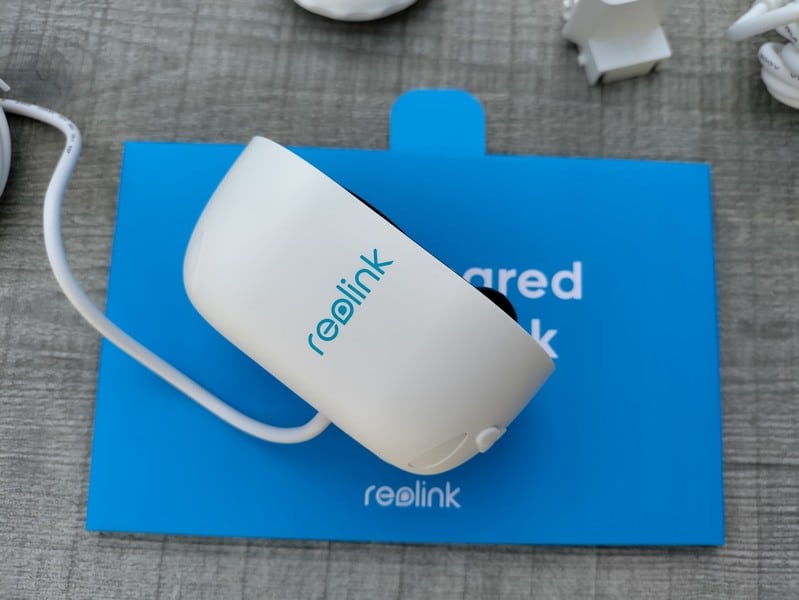 Le design de la caméra est soigné, sa façade en noire laisse apparaître le projecteur, la LED d’état, l’objectif, le capteur de lumière et le capteur de PIR. Le reste de l’équipement est en blanc. À l’arrière nous retrouvons le haut-parleur, l’arrivée du câble d’alimentation se situe en dessous l’emplacement de la carte MicroSD qui est protégé par un cache en silicone. Juste à côté, vous retrouvez le bouton reset de la caméra.