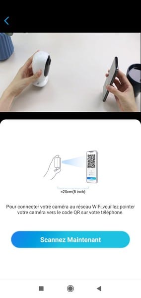 Pour se connecter à la caméra, il faut réaliser une procédure similaire aux précédents modèles testés. Il faut tout d’abord avoir l’application « Reolink » sur son téléphone. Ensuite, scanner le QR Code sur l'appareil et suivre les instructions.