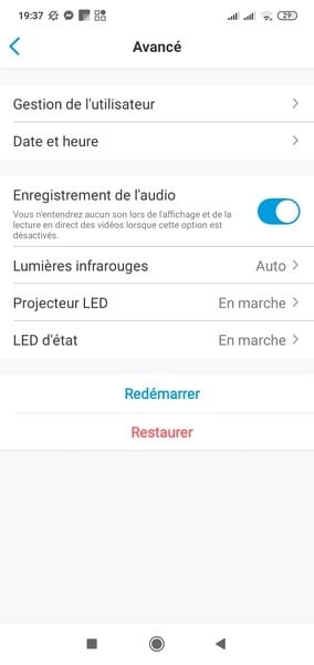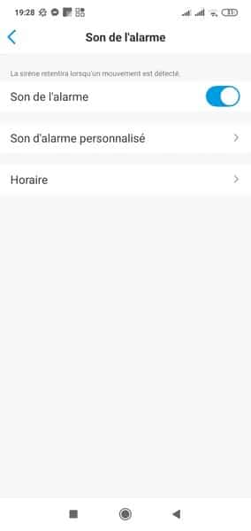 Les fonctions mises en avant pour cette caméra sont le projecteur et la sirène qui se déclenche en cas de mouvement ou manuellement. Nous avons déjà discuté du projecteur précédemment. La sirène est une option intéressante, car elle va vous permettre de surprendre la personne qui passera devant votre caméra. Sa puissance est limitée, vous ne réveillerez pas tous le quartier, mais elle est tout de même efficace. Vous pouvez la personnalisé, mais étant donnée la qualité du haut-parleur vous avez de grandes chances que votre message soit incompréhensible 😆.