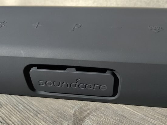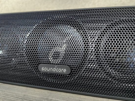 L'enceinte Soundcore Motion+ s'apparente à une petite barre de son : elle fait 25,7 cm de longueur, sur environ 8 cm de hauteur et de largeur. Son design en fait une enceinte idéale à poser sur un bureau ou sur un meuble.