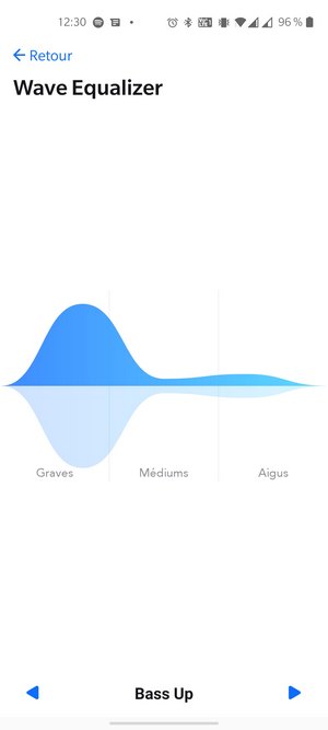 L'application Soundcore répond présente une fois de plus puisqu'elle permet de piloter cette enceinte. Ainsi, on peut gérer le volume, la lecture/pause, configurer l'arrêt automatique de l'enceinte en cas d'inactivité et effectuer les mises à jour du firmware. Ce n'est pas tout et c'est surement le plus intéressant : la possibilité d'accéder à la fonction "Wave Equalizer" qui s'apparente à un égaliseur sonore avec quelques modes prédéfinis. Il y a aussi la possibilité de créer un mode personnalisé. Un peu moins riche que pour certains modèles où il y a plus de profils préconfigurés mais indispensable malgré tout !