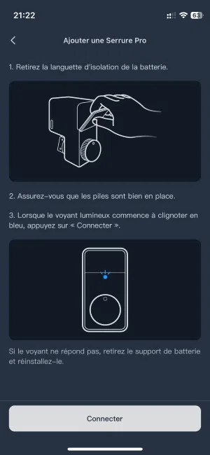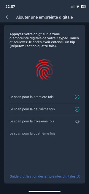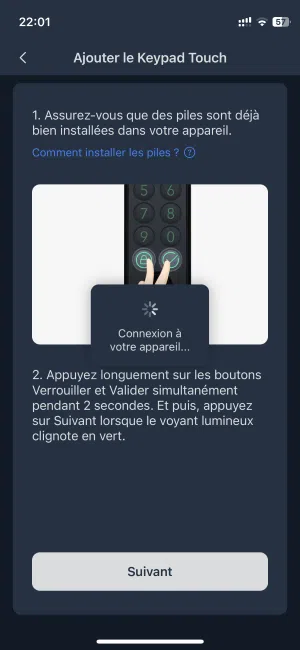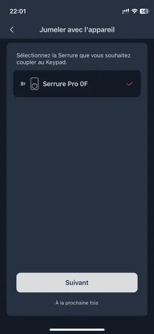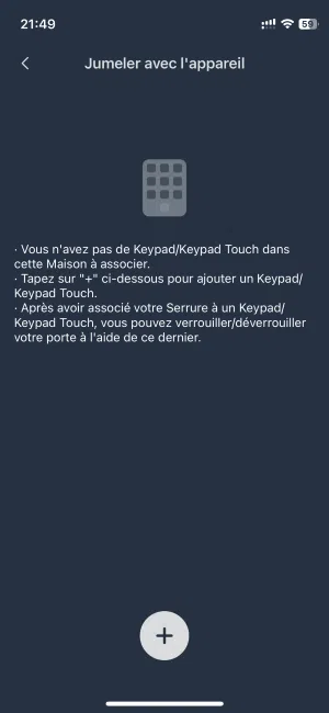 Pour le Keypad, vous avez deux entrées possibles pour l’intégration. Soit par le menu d’accueil, soit par le menu de la serrure. Dans les 2 cas, il est nécessaire de coupler la serrure à celui-ci. Lors de la première mise sous tension, comme toujours, le mode appairage s’exécute. Sélectionner le Keypad et vous retrouvez de nouveau un guide pour le montage physique. Il est nécessaire de préparer les fixations et de faire l’ajout du Keypad dans l’application avant de le fixer sur le mur, lors de la connexion la serrure sera testée sinon vous risquez d’être enfermé dehors.