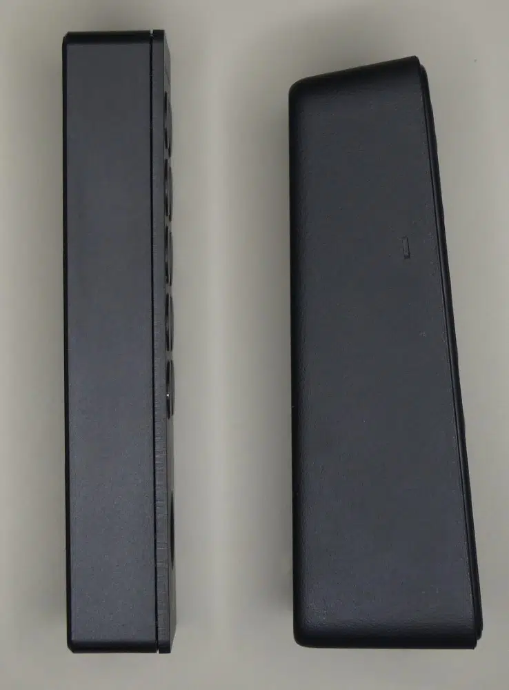 Pour le Keypad, nous faisons le même constat, celui-ci a une taille conséquente (les dimensions : 112 x 38 x 36 mm). Il est composé principalement de plastique dur noir pour le corps et d’un plastique souple noir au touché doux pour la partie clavier. Il est de forme trapèze avec les angles arrondis. Cette forme a surement pour but de relever le clavier vers les yeux de l’utilisateur.