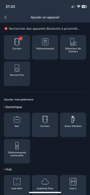 Après l’installation physique, passons à la configuration. Une fois l’application installée et connectée (application disponible sur les différents magasins), sélectionner l’ajout d’un nouvel appareil.