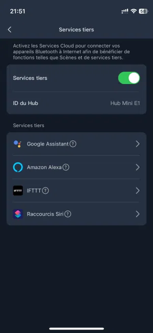 Cette dernière n'est activable que si vous disposez d’un HUB (HUB V2 ou mini HUB). Le fait d’activer les services tiers génère un couplage avec le HUB à disposition et permet l’accès par réseau mobile ou réseau wifi distant.