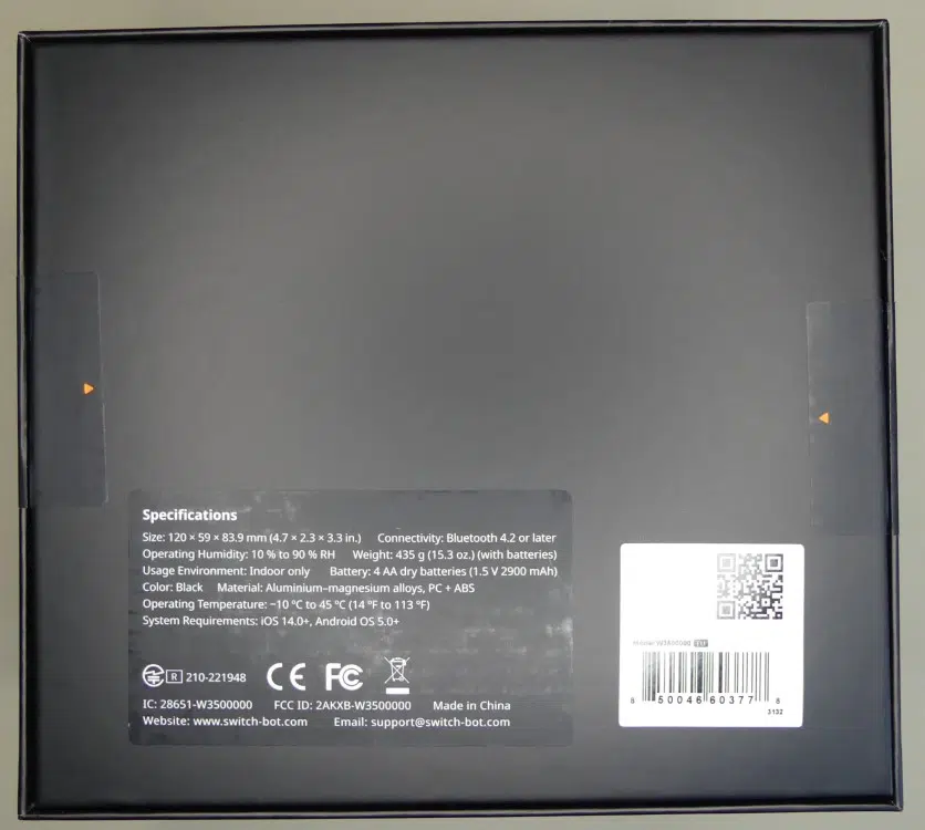 Contrairement aux autres emballages où SwitchBot utilise des modèles de carton plus standard avec languettes. Celui-ci est un modèle en emboitement (type emballage de smartphone), ils l’ont sûrement choisi afin de marquer une différence notable avec les autres produits de la marque.