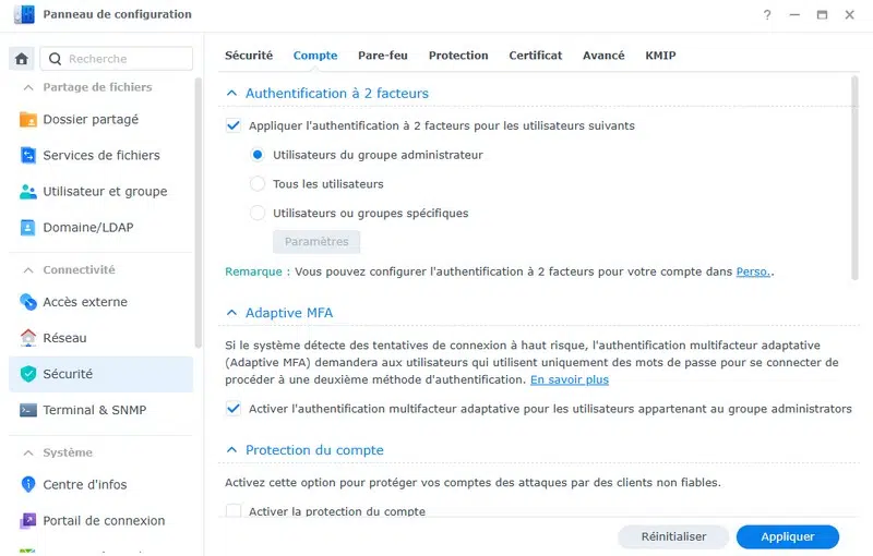 - Authentification à double facteur sur les comptes des utilisateurs (y compris avec l'Adaptive MFA)