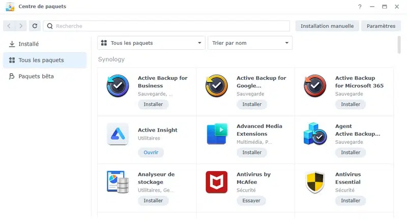 Le système DSM est livré avec un ensemble de fonctionnalités natives, mais ce n'est pas figé. Le Centre de paquets offre l'opportunité d'installer des applications supplémentaires, qu'elles soient développées Synology ou d'autres éditeurs. Ce n'est pas tout, puisque la prise en charge des conteneurs Docker, via l'application Container Manager, ouvre également la voie à l'installation de nombreuses applications diverses et variées.