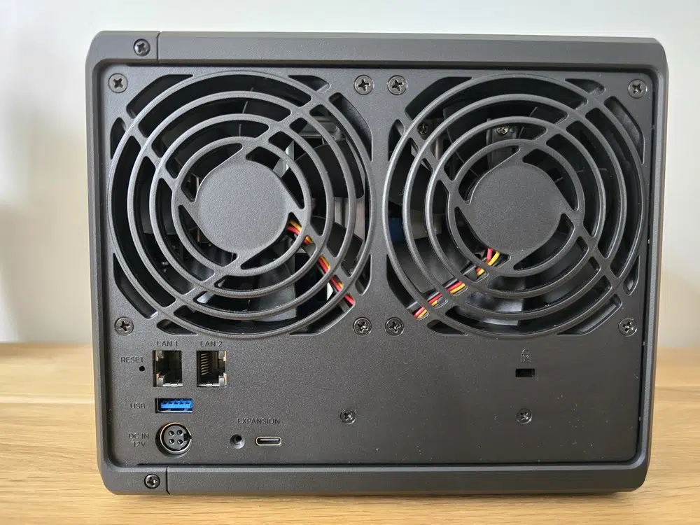 En revanche, il y a des éléments identiques : RAM, nombre de baies de disques et emplacements pour disque SSD M.2. Même si le DS925+ évolue en comparaison de son prédécesseur, on aurait pu s'attendre à mieux : un processeur plus récent (notamment, car celui-ci ne supportera pas le transcodage matériel avec Jellyfin), le passage en DDR5 ou encore la conservation du port PCIe aurait été appréciable.