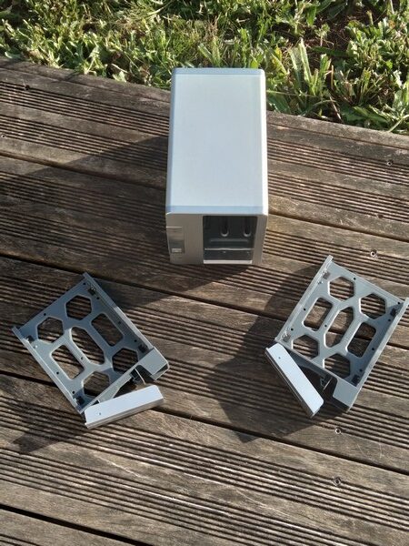Pas de tournevis fournis cette fois-ci, mais avec ce modèle pour les disques 3,5'' pas besoin de vis. Avec cette nouvelle génération, TerraMaster a ajouté de quoi clipser les disques sur le côté des baies pour les verrouiller.