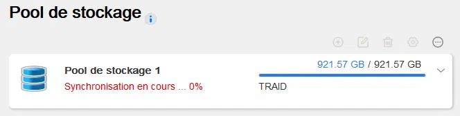 Dans les paramètres du Pool de stockage, vous pouvez remarquer que la synchronisation de ce dernier est en cours. Elle prend plusieurs heures, mais vous pouvez d'ores et déjà utiliser l'appareil.