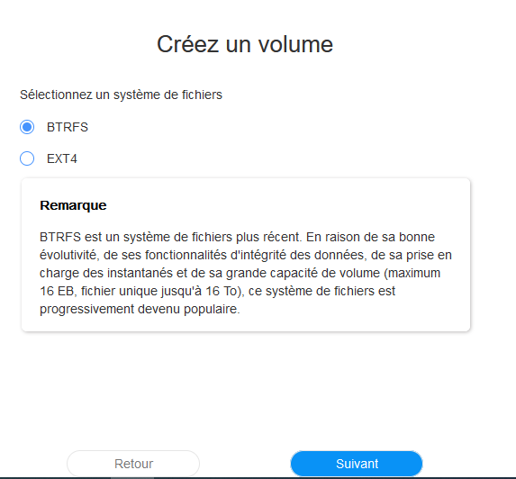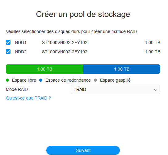 Pour faire ces tests, mon NAS est équipé de deux disques Seagate IronWolf 1 To (SATA 6 Gbit/s, 5 900 tr/min, avec 64 Mo de mémoire cache). Ils sont configurés en RAID1 avec un système de fichier BTRFS.