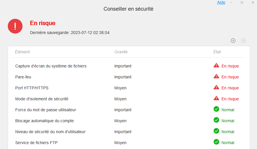 Une fois la mise en route terminée, nous arrivons sur la page d'accueil du TOS 5 et le "Conseiller en sécurité" nous donnent quelques éléments pour renforcer la sécurité de notre système :