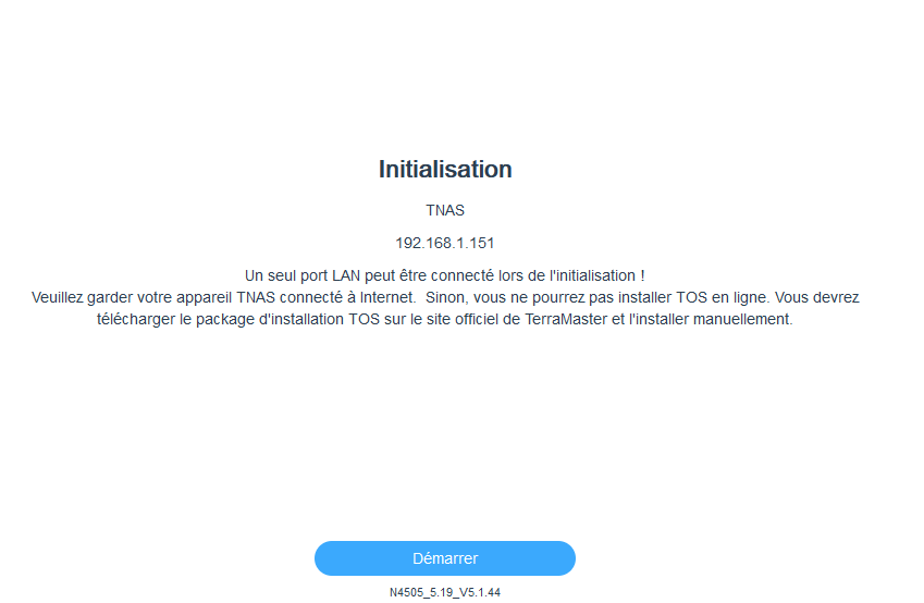 Une fois notre NAS monté, branché sur le réseau et démarré, il va récupérer une adresse IP. Pour accéder à l'interface WEB, vous avez deux solutions, soit vous passez par l'URL "http://tnas.local/", soit vous utilisez le logiciel du constructeur TNAS PC qui va analyser le réseau local à la recherche du NAS. Pour ma part, j'ai utilisé la première solution.