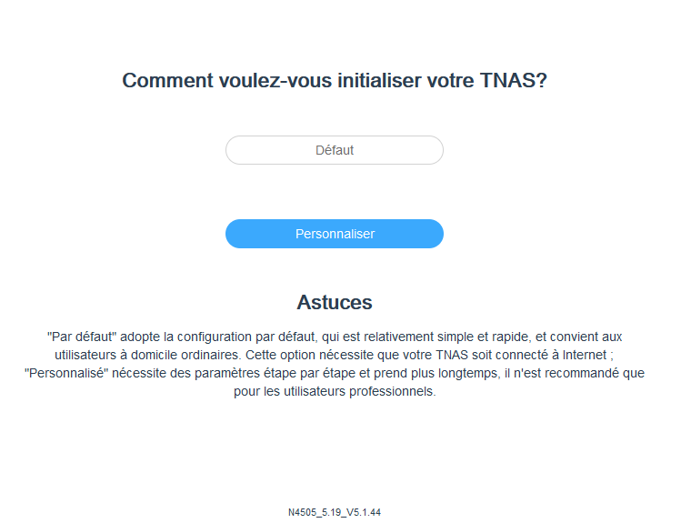 Vous pourrez ensuite lancer l'initialisation. Deux choix sont possibles, "Défaut" et "Personnaliser". J'ai fait le choix de prendre l'option "Personnaliser" pour voir en détail les configurations possibles.