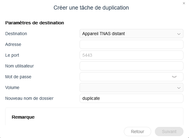 Pour assurer une protection supplémentaire, vous avez la possibilité de dupliquer vos snapshots soit vers un nouveau dossier en local, soit l'externaliser vers un autre NAS Terramaster. La tâche de duplication peut être planifiée afin qu'elle soit exécutée de façon récurrente.