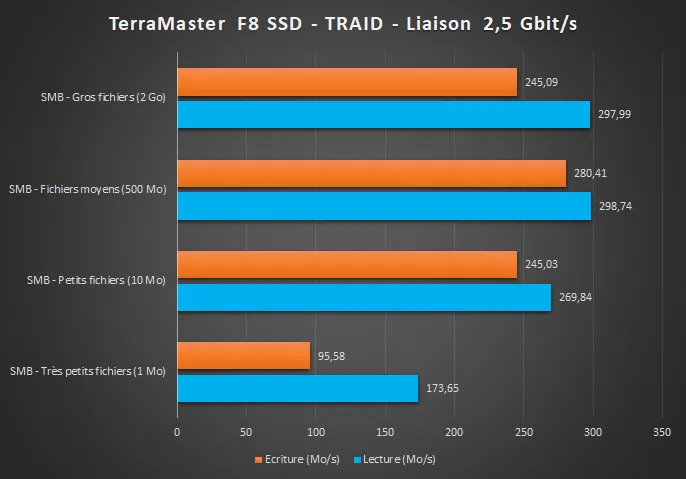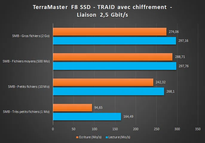 Ci-dessous, les résultats convaincants obtenus via le protocole SMB sur des transferts de fichiers via le réseau.