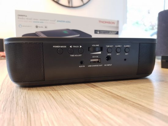 La station d'accueil Thomson est polyvalente et l'intégration d'Alexa lui permet de bénéficier de fonctionnalités intéressantes en termes d'interaction. En complément, l'application permet de contrôler la musique et les alarmes. Finalement, c'est dommage d'avoir autant de boutons alors que l'on pourrait s'en passer pour une bonne partie d'entre eux. D'un point de vue global, notamment sur le dessus, je pense que Thomson aurait pu faire mieux sur le design.