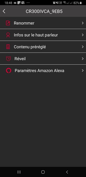 Pour le réveil, il y a la possibilité de configurer plusieurs alarmes dont deux à partir des boutons physiques de l'appareil. Depuis l'application, il est possible de configurer les alarmes plus finement, notamment la répétition, l'heure, ainsi que la sonnerie : cela pourrait être la radio ou des musiques à partir de différents services Tunein, iHeartRadio, Napster et Tidal. Malheureusement, il n'est pas proposé d'utiliser Deezer ou Spotify pour cette fonctionnalité, alors que le streaming audio est possible pour ces deux applications.
