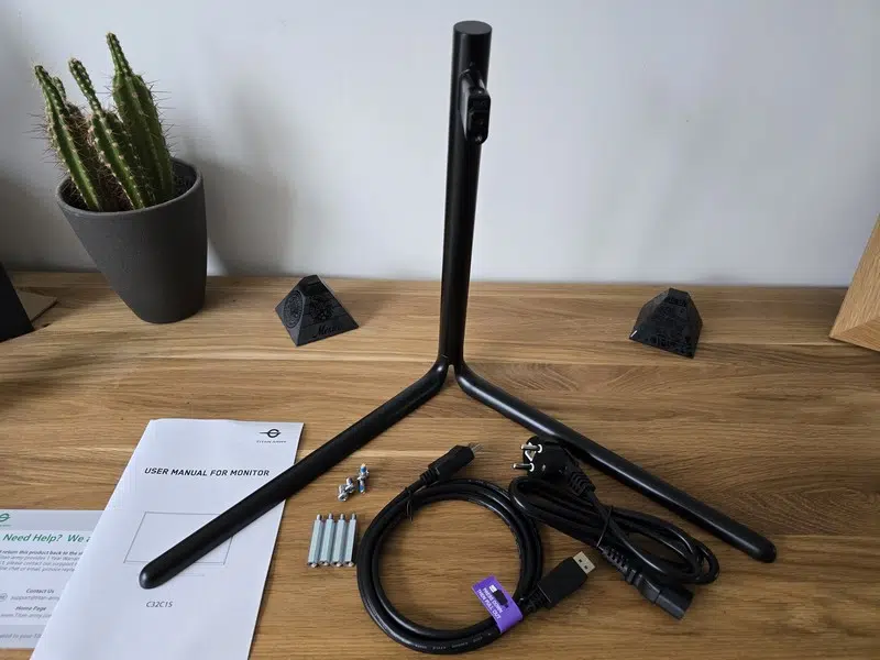 - Le support de l'écran, en deux parties et qu'il conviendra d'assembler (il y a une vis à mettre)