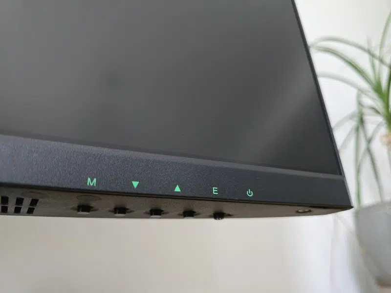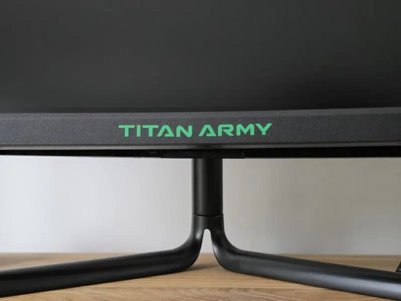Titan Army a réalisé un bon travail sur la conception de cet écran et la qualité de fabrication est bonne. Personnellement, le pied me semble un peu fin, visuellement parlant, en comparaison de la partie principale de l'écran, mais l'ensemble est stable. Même s'il s'agit d'un écran pour le gaming, il n'y a pas de folie au niveau de l'esthétique, ni même d'effets lumineux : il pourra prendre place dans tous les environnements, sans problème. Ce qui me plait moins, c'est le placement des boutons, même s'il y a un marquage très utile sur la façade qui est appréciable (au moins on sait ce que l'on fait).