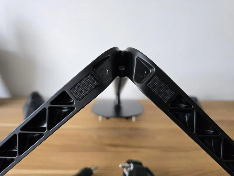 Même si cet écran est incurvé, il est tout à fait possible de l'installer sur un support VESA, grâce aux "longues vis" fournies et qui viennent se positionner à l'arrière de l'écran, à la place du pied. Pour assurer la stabilité de l'écran, il y a plusieurs patins antidérapants en dessous du pied, et ce dernier est intégralement en métal.