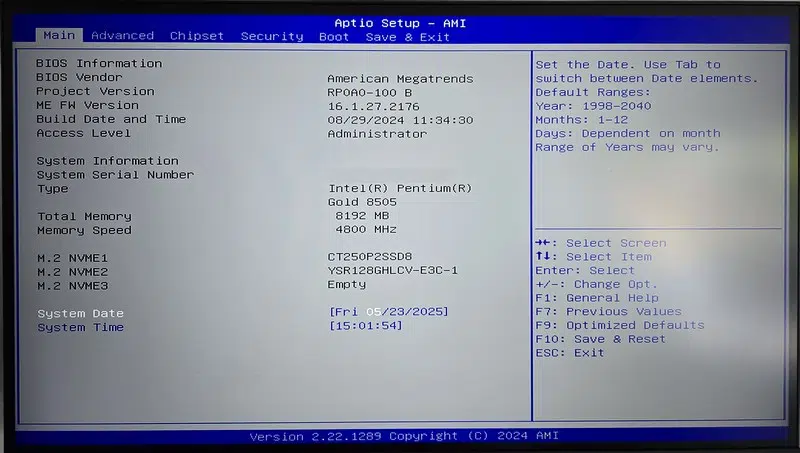 Au démarrage du boitier, ce dernier va lancer automatiquement le système UGOS PRO. En tant qu'utilisateur avancé, vous pouvez aussi accéder au BIOS du NAS via le raccourci clavier CTRL + F2. Vous pouvez envisager d'y installer un autre système, comme TrueNAS (ou Unraid).