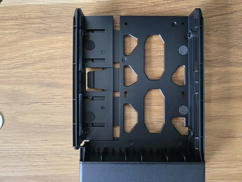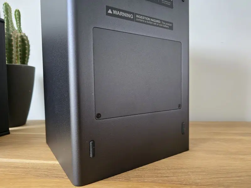 Ce NAS UGREEN dégage une très bonne impression au déballage. La marque a pris soin de créer une réelle identité visuelle au niveau de ses boitiers. Nous avons face à nous un boitier en alliage d'aluminium avec une finition gris sidéral. L'ensemble aspire confiance et il y a des petits détails intéressants, à commencer par les baies de disques numérotées (cela évite de se tromper lorsqu'on les retire pour nettoyer son NAS, par exemple).
