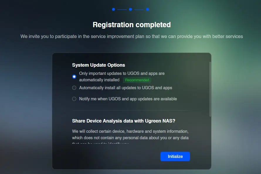 Le NAS UGREEN est livré avec un nouveau système surnommé UGOS PRO. La mise en service de ce NAS se résume en trois étapes :