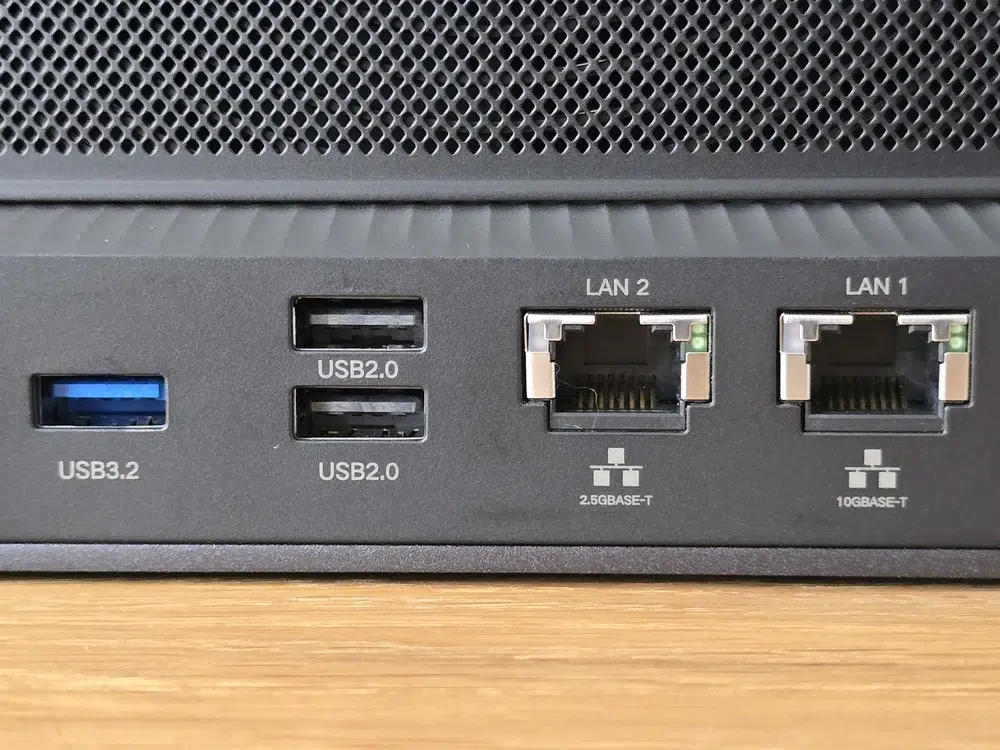- Interfaces réseau : 1 x 10 Gbit/s (RJ45), 1 x 2.5 Gbit/s (RJ45)