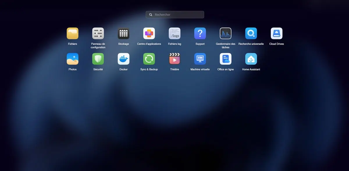 Un bureau virtuel, dans l'esprit de ce que propose la concurrence, a été adopté par UGREEN pour son système d'exploitation. Ce n'est pas une surprise et cela présente un avantage : si vous avez l'habitude d'utiliser des NAS d'autres marques, vous ne serez pas totalement perdu avec ce système. Les icônes sur le Bureau correspondent à différentes sections du système et aux applications installées. Ici, il y en a beaucoup parce que j'ai installé des applications supplémentaires sur le NAS.