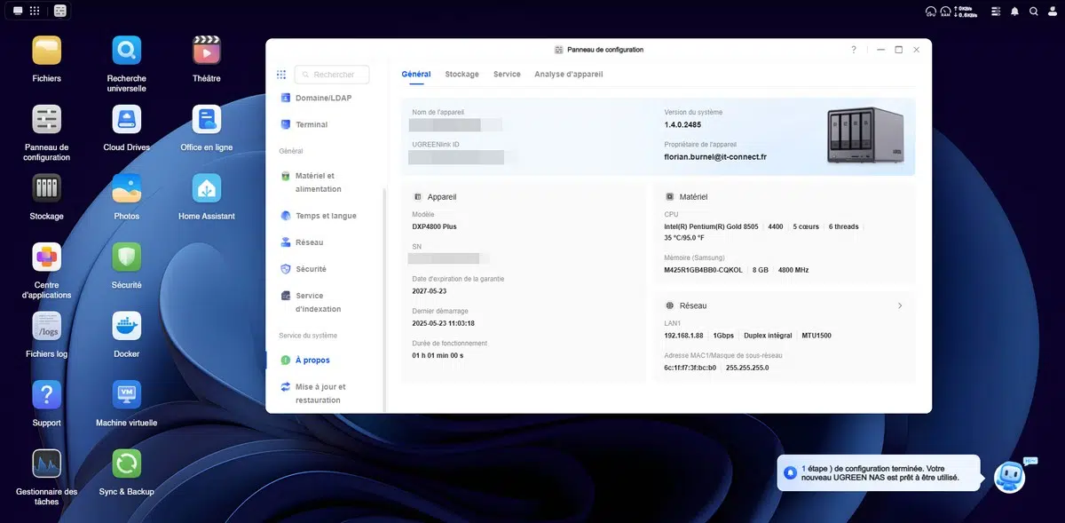 Le système UGOS PRO est encore jeune, et ça se voit. Il est régulièrement mis à jour, parce qu'UGREEN travaille sur le développement de façon intensive. Il y a une bonne base, car le système est agréable à utiliser, il est réactif et il est moderne. Il contient aussi les fonctionnalités essentielles et la présence de Docker ouvre la voie à des centaines d'applications tierces, via les conteneurs.