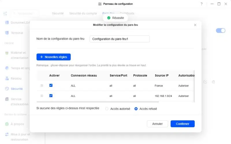 - Pare-feu pour filtrer les accès (par port, par adresse IP, par sous-réseau, par pays)