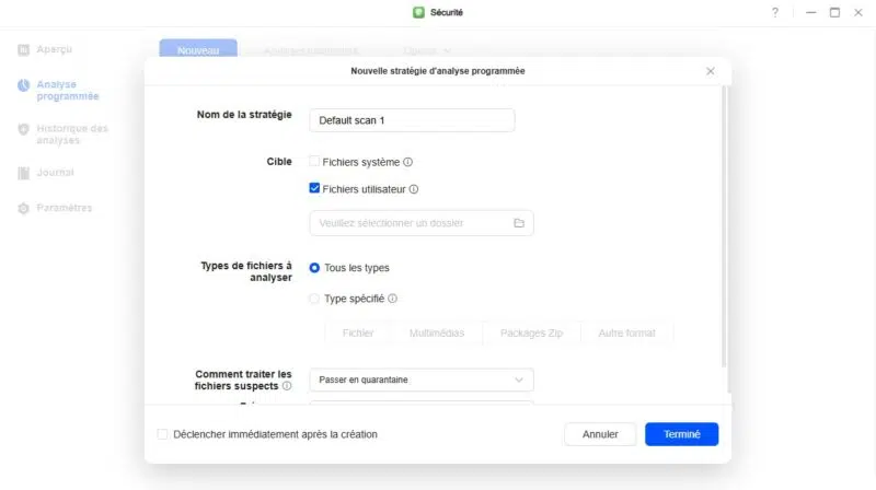 - Analyser anti-virus avec ClamAV (paquet à installer en supplément)