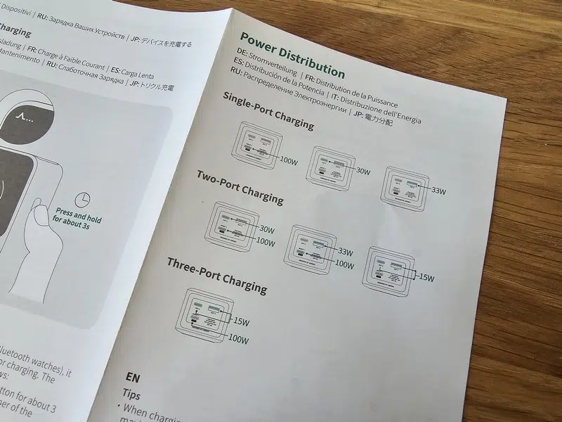 Il faut savoir que lorsque les deux ports USB-C sont utilisés ensemble, la batterie peut délivrer 130 watts. Si tous les ports sont utilisés, alors la puissance de sortie maximale est de 115 watts. Nous avons tout intérêt à prioriser l'utilisation des ports USB-C. La puissance totale de 130 watts est suffisante pour recharger un ordinateur et un smartphone en même temps.