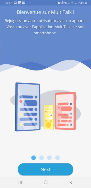 Concernant la fonctionnalité MultiTalk, elle permet à plusieurs personnes de réaliser une conversation par tchat. Que vous soyez équipé d'un traducteur Vasco Translator M3 ou simplement d'un smartphone avec l'application MultiTalk installée, vous pouvez rejoindre la conversation. Chaque participant rejoint la conversation en précisant sa langue et l'application s'occupe du reste.