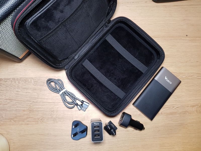 La POWERBOX est un kit de recharge proposé par Vasco et vendu en complément pour 49 euros. La sacoche de rangement est de très bonne qualité, elle est bien dure et l'intérieur très doux au toucher, comme vous pouvez le deviner en regardant les photos ci-dessous. Voici les dimensions de la sacoche : 18 x 24 cm.